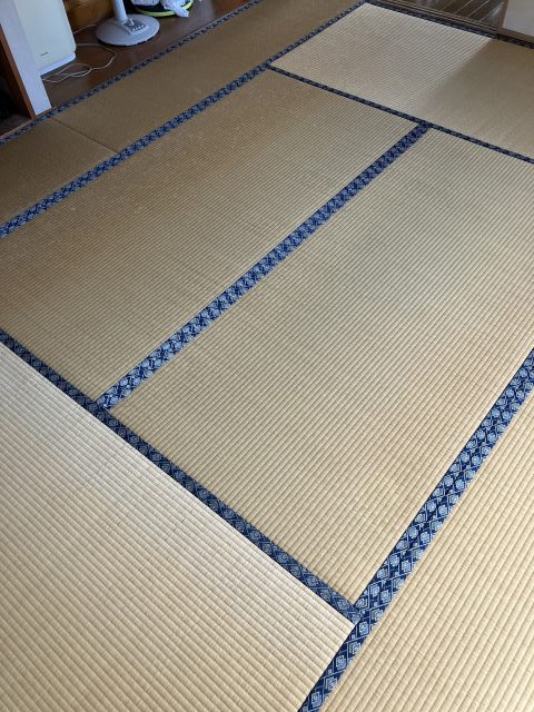毎度おなじみの、ガラリと印象が変わりました。 畳の縁も、赤がベースのえんじ色に変わりました。