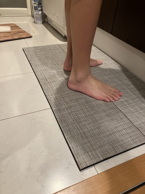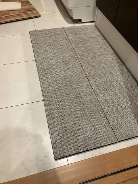 材料が余ったので洗面化粧台に使ってみました。 素足が喜んでる気がします。特に冬場。